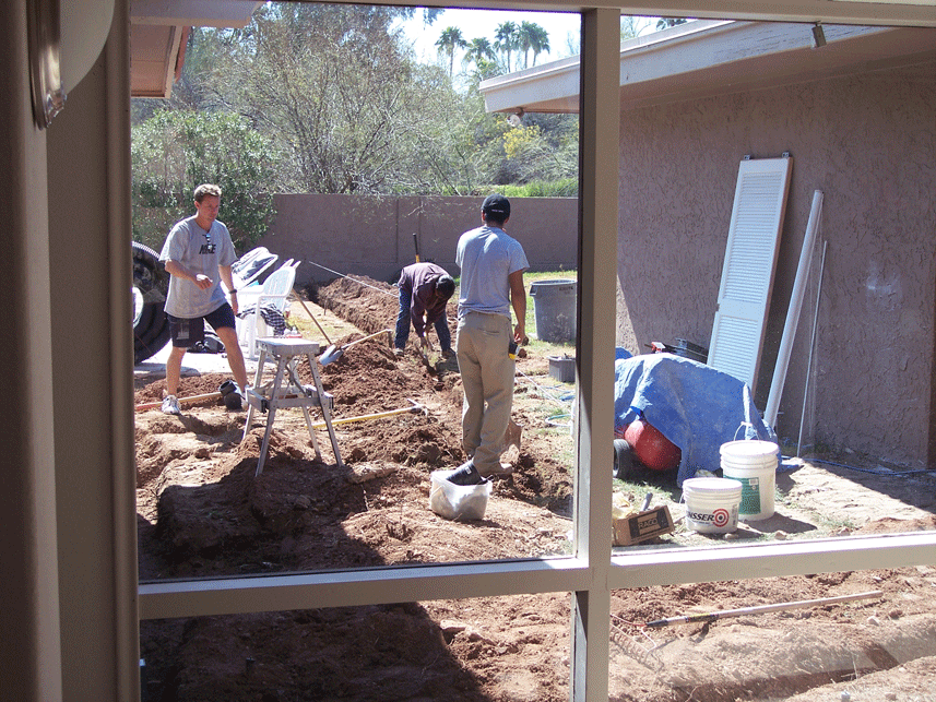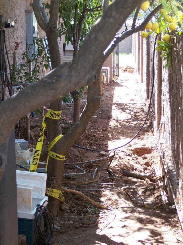 Here are some pictures of the work going on around the house. Its been interesting so far. We had problems with the main electrical line coming into the house. Our friendly local power company claimed to have turn the power off so the guys could work, but come to find out, it was not really off. Every once and a while for about a week we thought there were gun shots. It was just the live wires shorting out. The power company was like oops, we forgot, but we did put caution tape around it, like that helped. Of course the power was supposed to be off so the contractor could work on it, and he was not too happy about the near death experience, hehe. No one got hurt though.